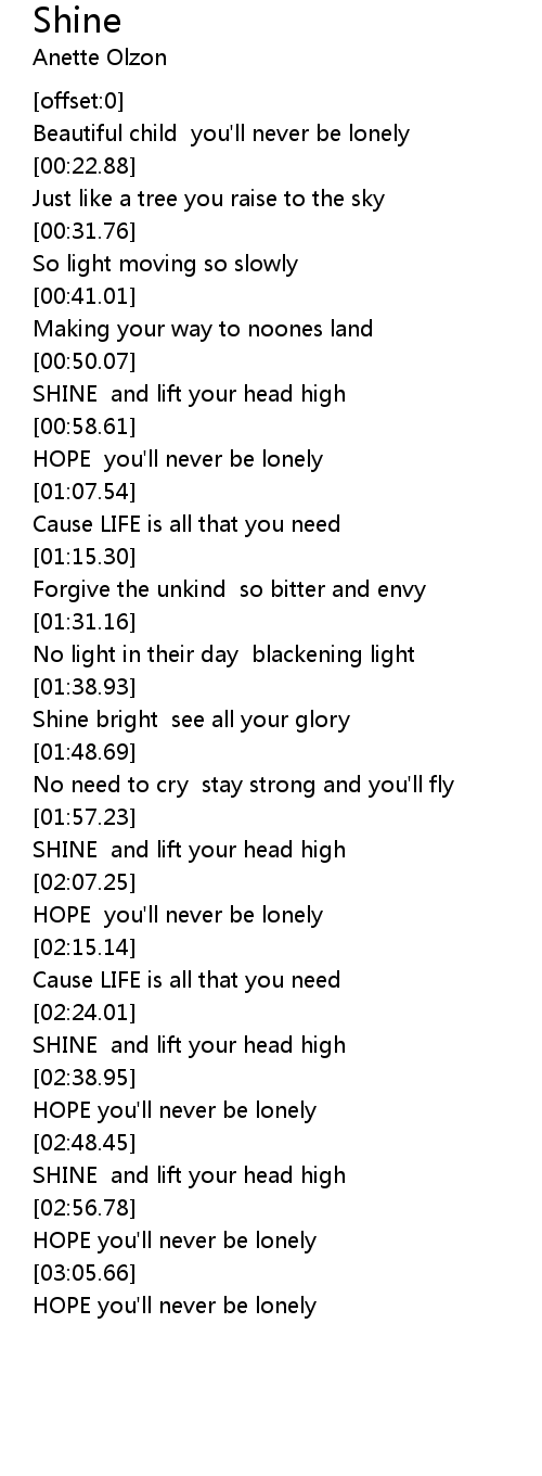 Beautiful child you'll never be lonely |