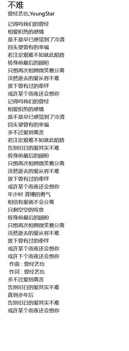 | [00:01.00] | 作词 : 曾经艺也 |