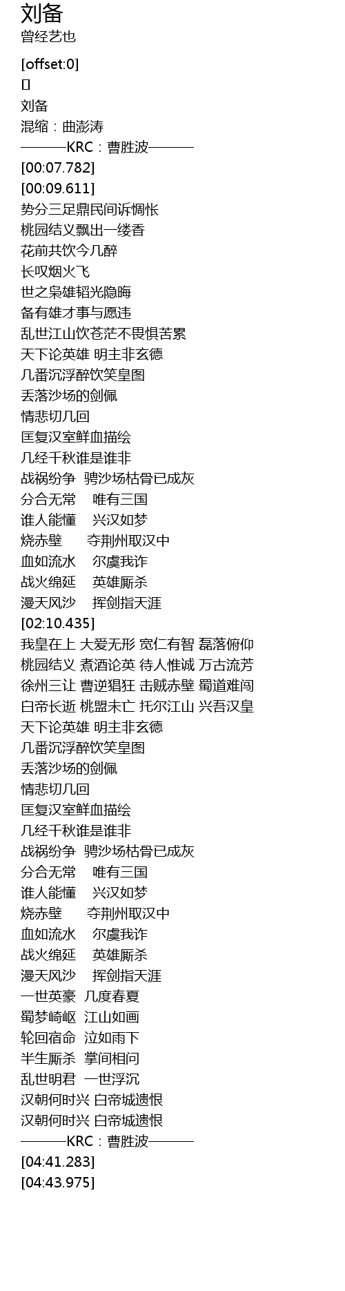 | [04:38.591] | ———KRC:曹胜波——— |