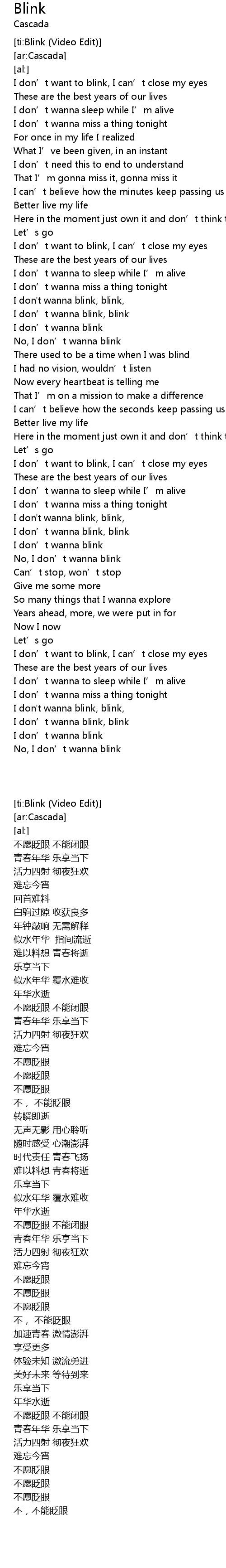 | [00:00.00] | I don' t want to blink, I can' t close my eyes |