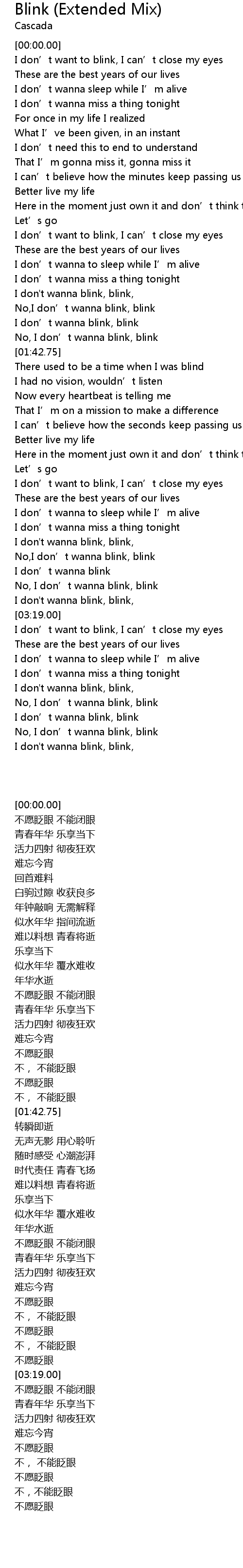 | [03:03.54] | No, I don' t wanna blink, blink |
