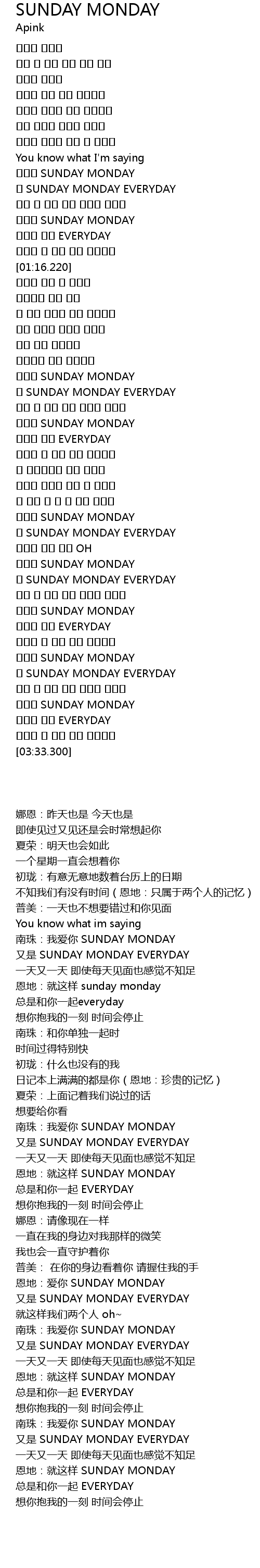 | [02:35.480] | 사랑해 SUNDAY MONDAY |