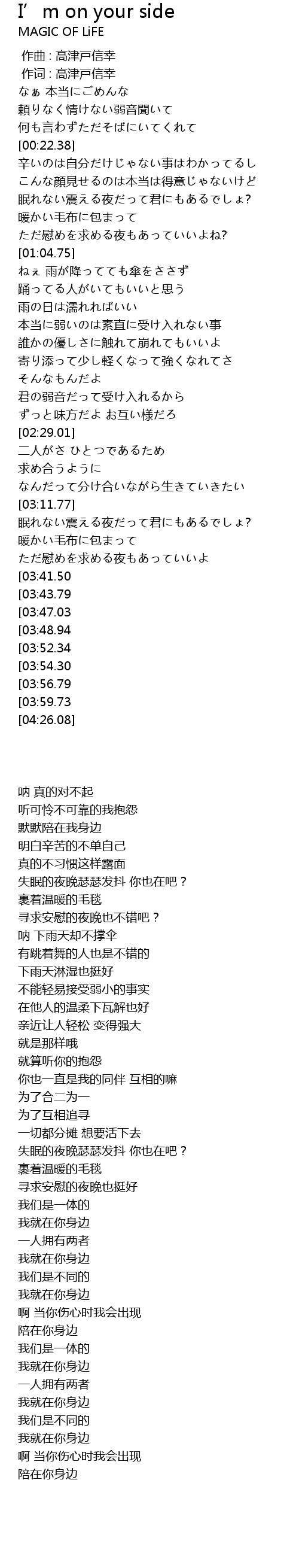 | [02:23.93] | ずっと味方だよ お互い様だろ |