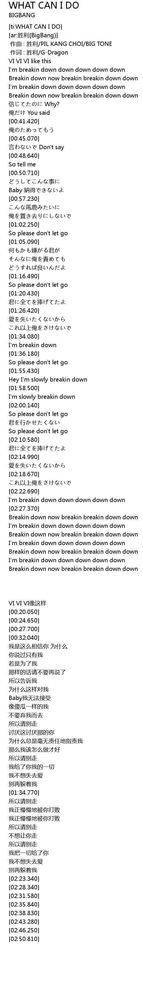 | [02:50.810] | Breakin down now breakin breakin down down |