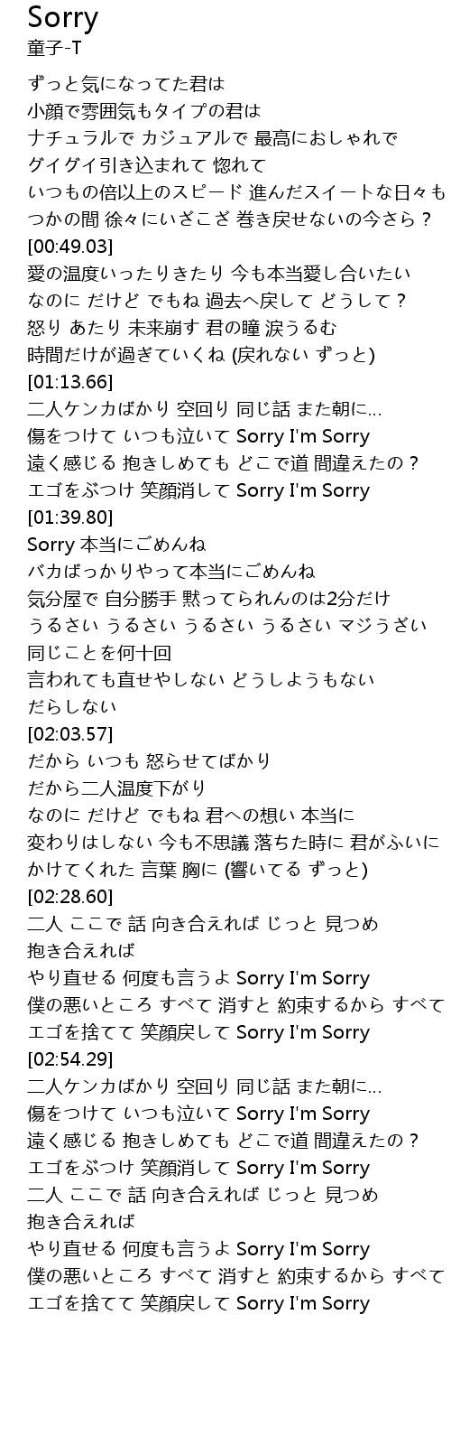 | [02:35.69] | やり直せる 何度も言うよ Sorry I'm Sorry |