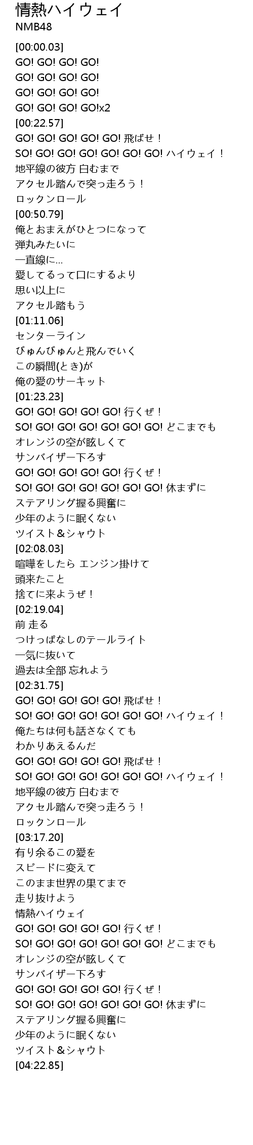 | [02:57.31] | SO! GO! GO! GO! GO! GO! GO! ハイウェイ! |