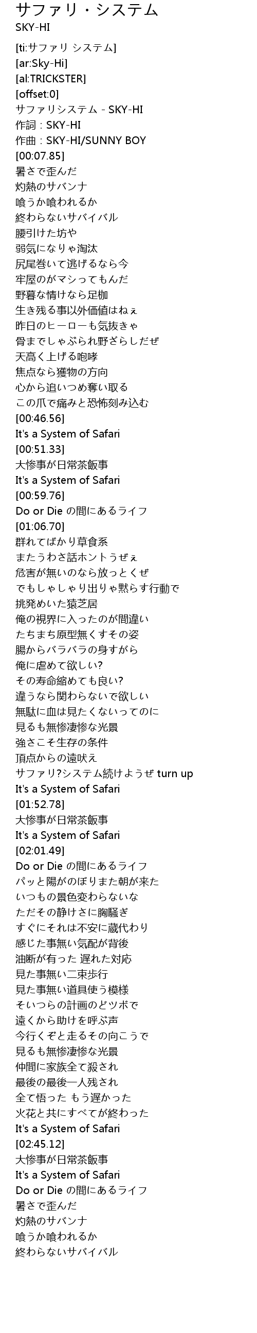 | [01:48.38] | サファリ?システム続けようぜ turn up |