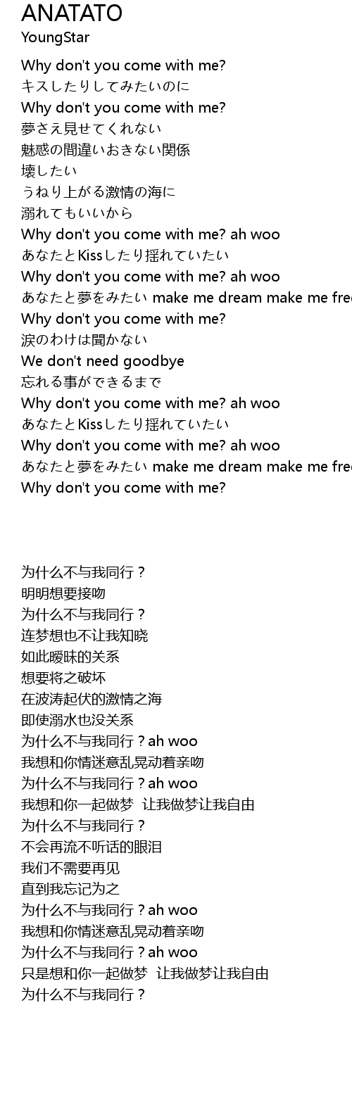 | [01:04.13] | Why don' t you come with me? ah woo |