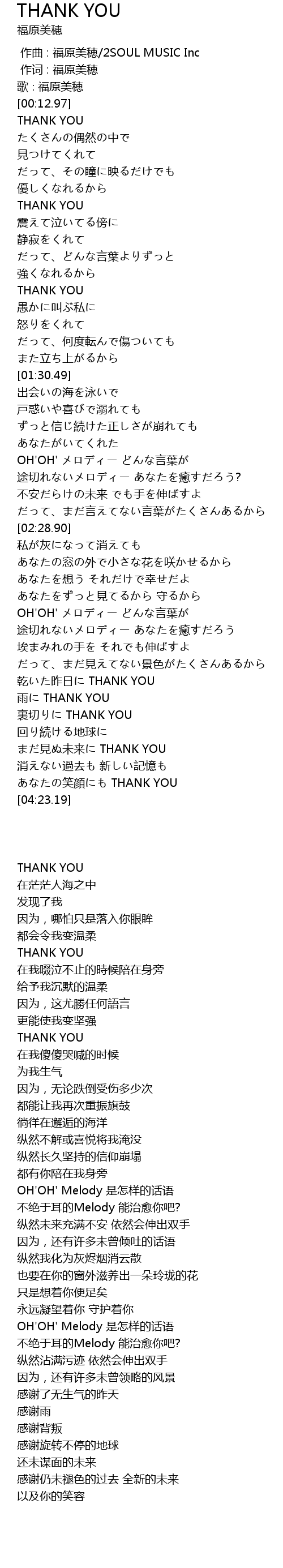 | [03:58.58] | jiàn wèi lái THANK YOU |