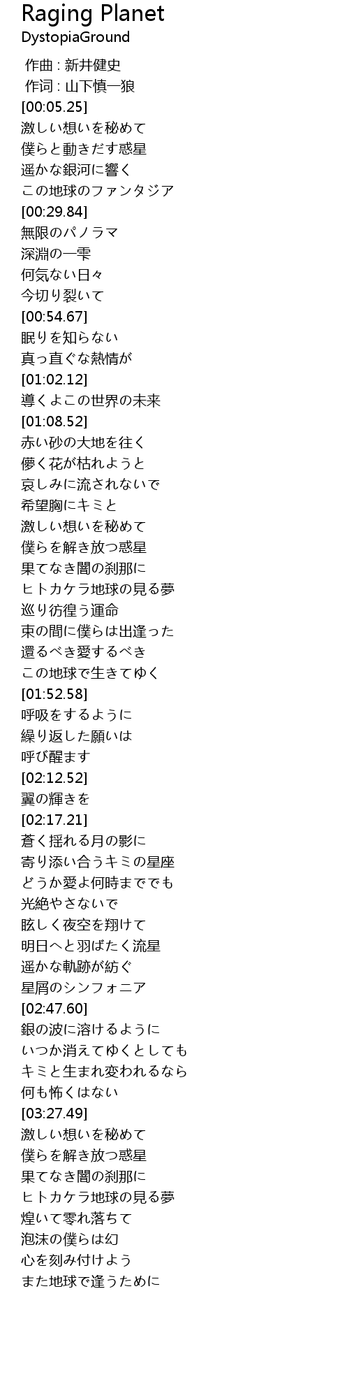 | [03:33.10] | 僕らを解き放つ惑星 |