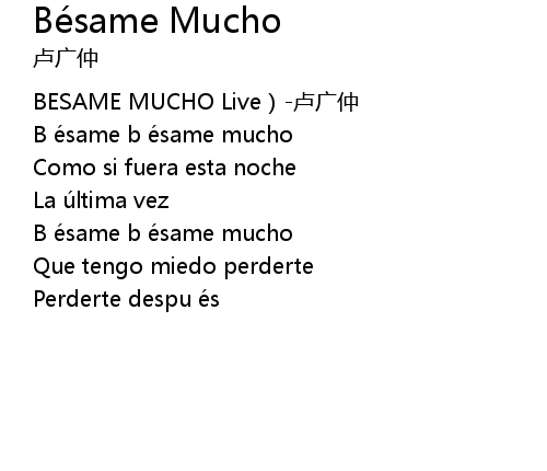 | [00:00.61] | BESAME MUCHO Live lú guǎng zhòng |