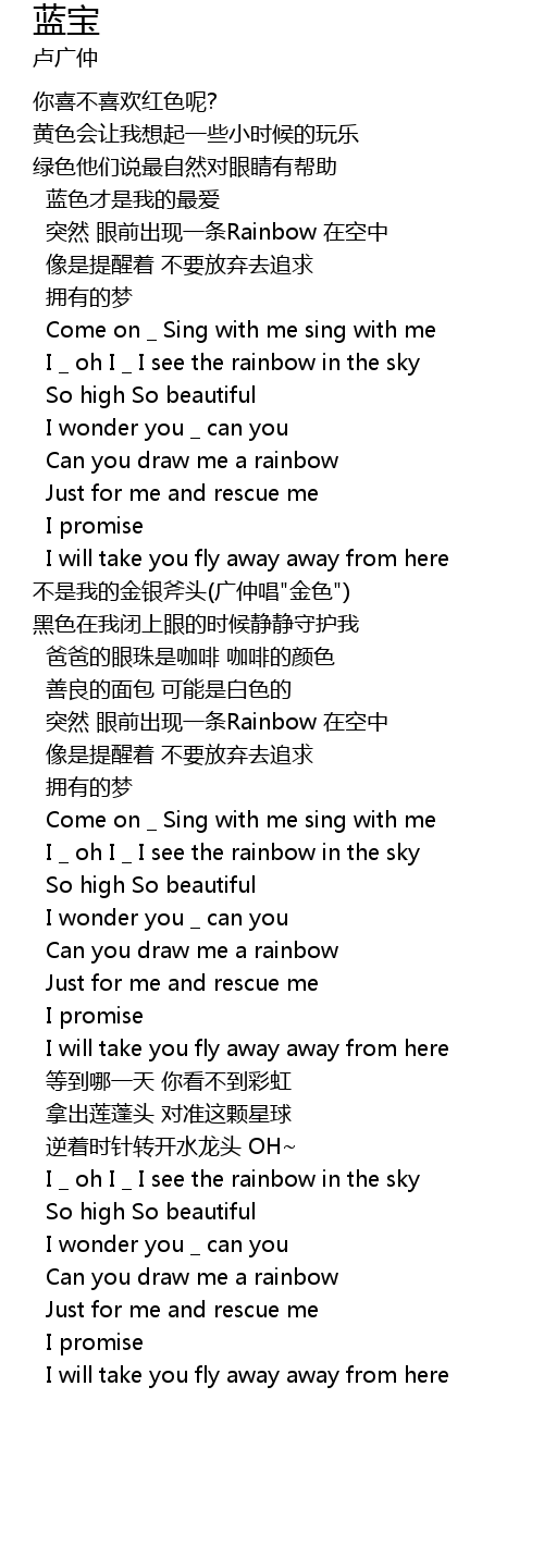 | [01:58.300] | tū rán yǎn qián chū xiàn yī tiáo Rainbow zài kōng zhōng |
