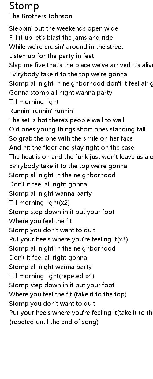 Stomp all night in neighborhood don't it feel alright |