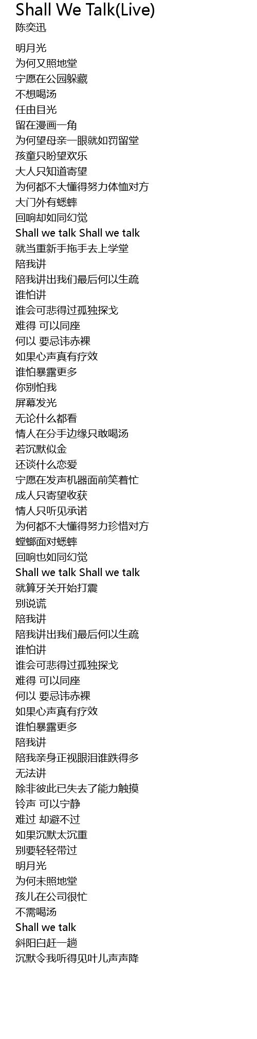 | 歌曲 | Shall We Talk(Live) |