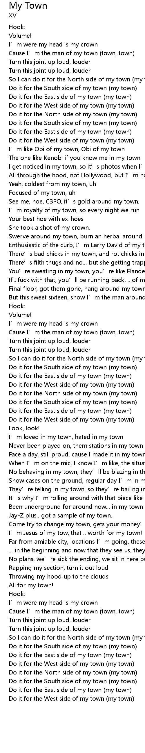 | Cause I' m the man of my town town, town | |