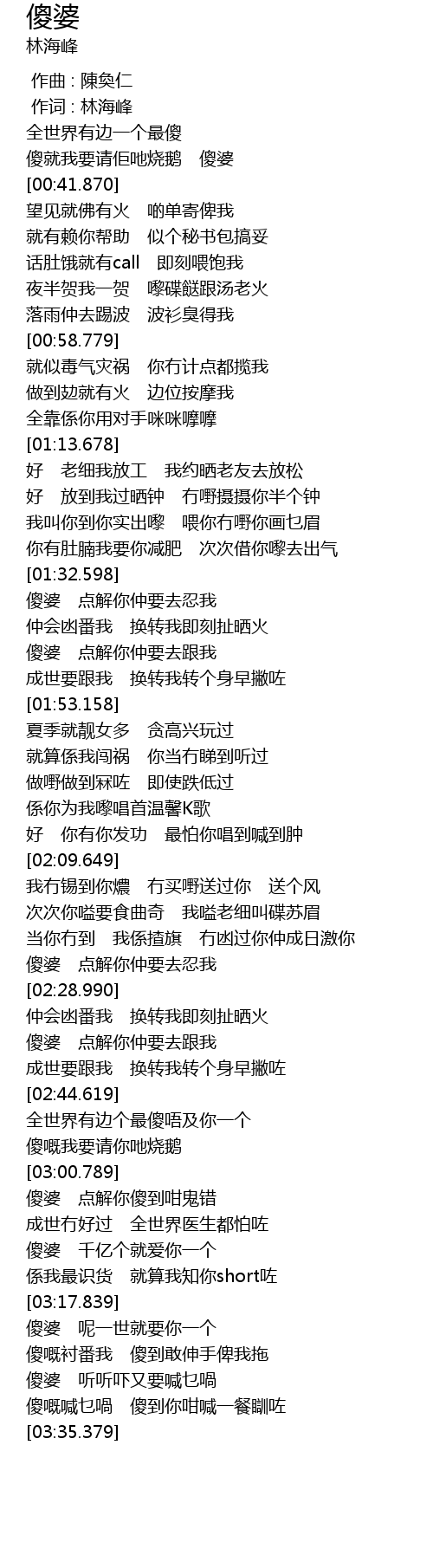 | [03:01.879] | 傻婆 点解你傻到咁鬼错 |