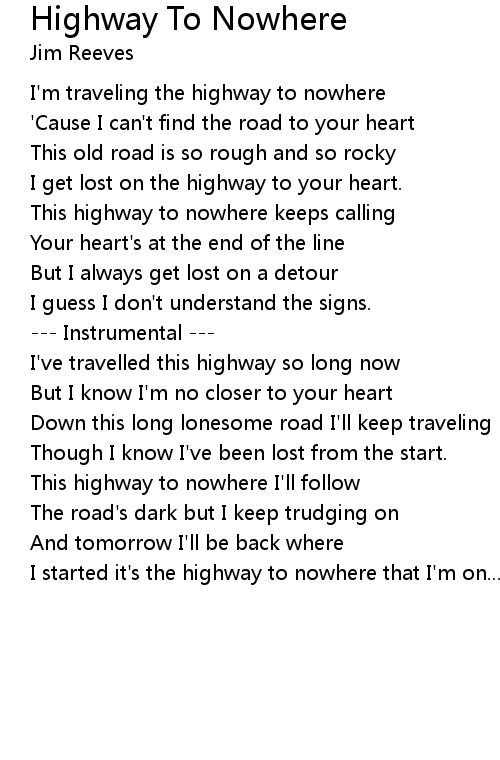 I'm traveling the highway to nowhere |