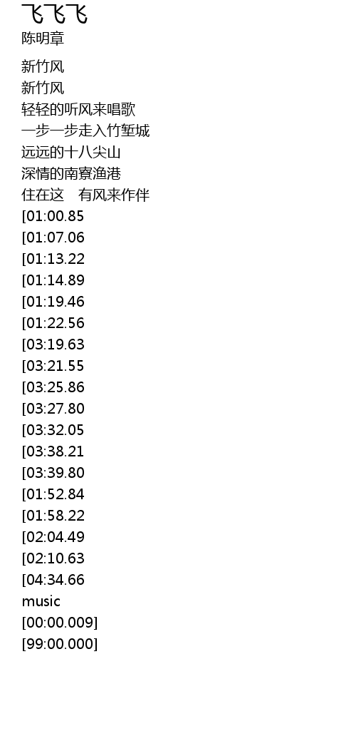 | [04:05.74][03:39.80][01:47.43] | 一阵阵的新竹风 |