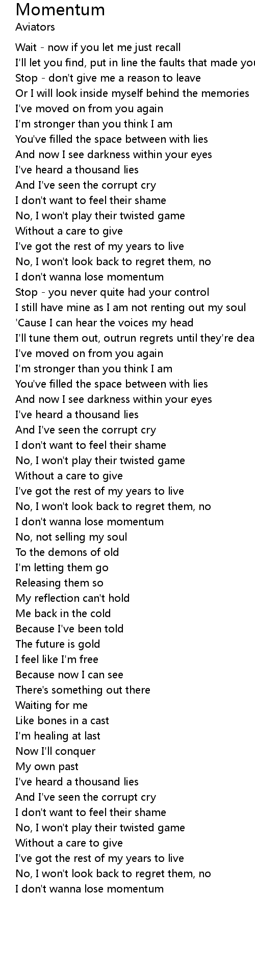 I don't wanna lose momentum |