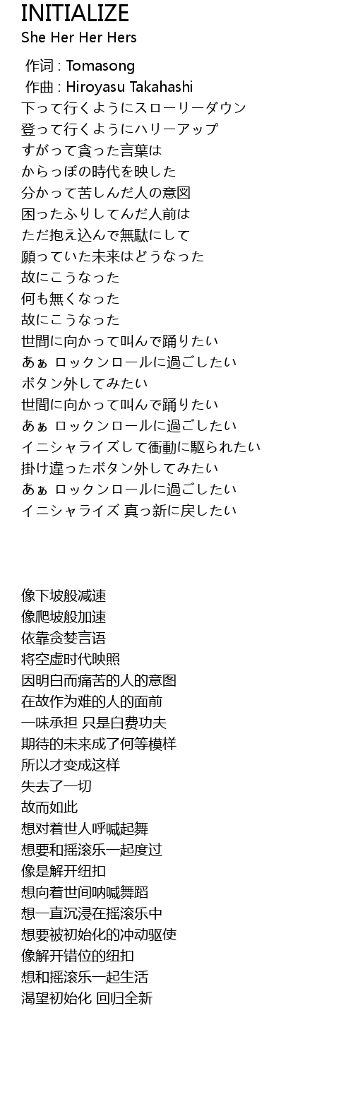 | [02:34.43] | イニシャライズ 真っ新に戻したい |
