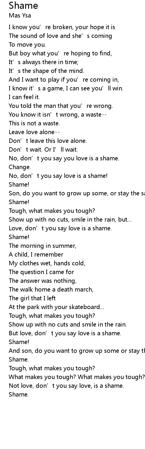 | Love, don’t you say love is a shame. | |