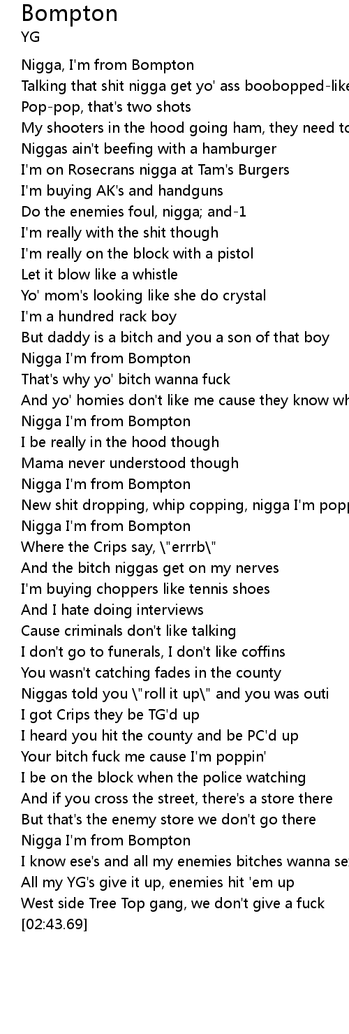 Nigga, I'm from Bompton |