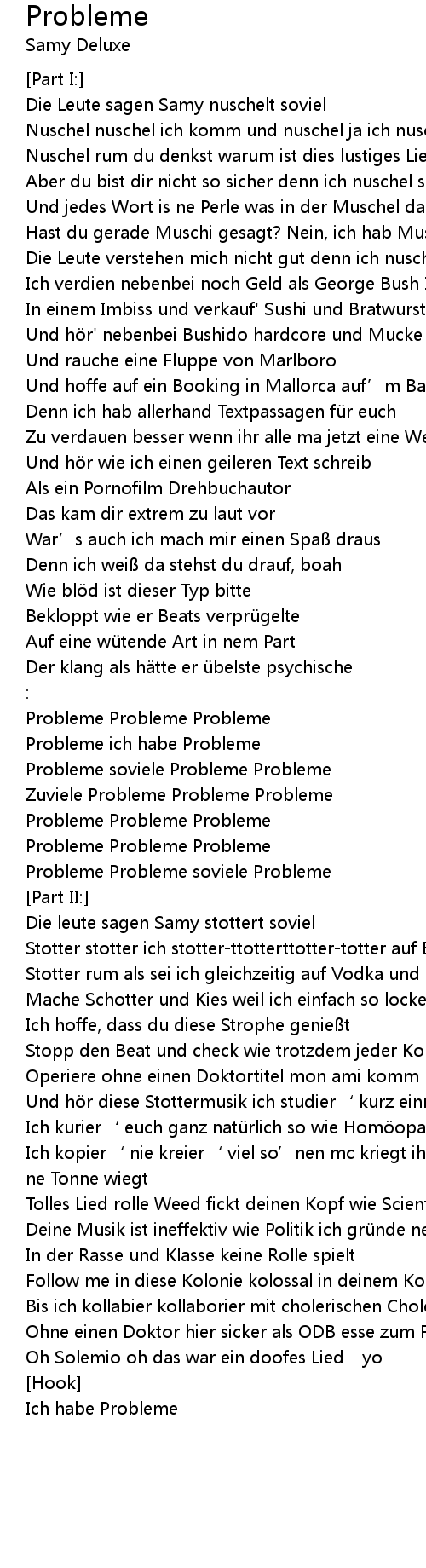 | Die Leute verstehen mich nicht gut denn ich nuschel so hart | |