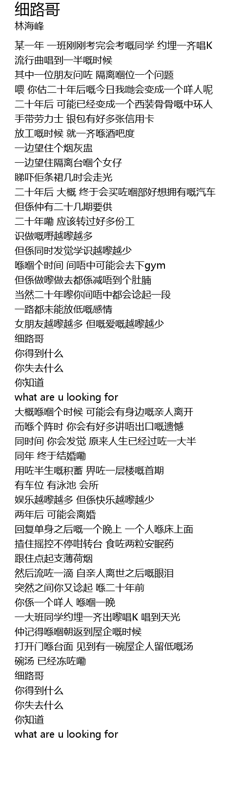 | 同时间 你会发觉 原来人生已经过咗一大半 | |
