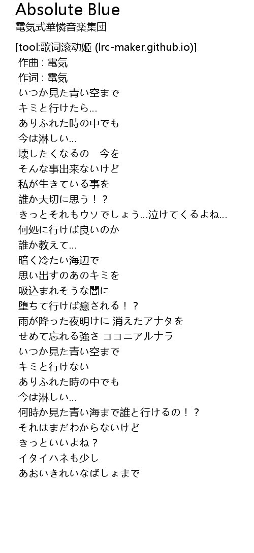 | [00:00.00] | 作词 : 電気 |
