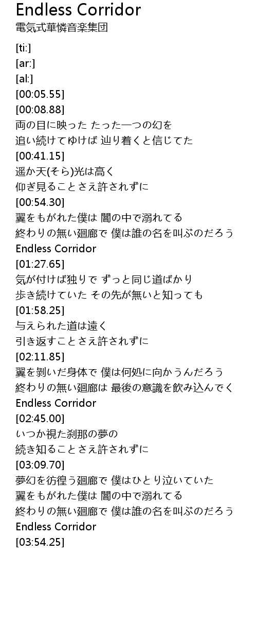 | [01:21.25] | Endless Corridor |