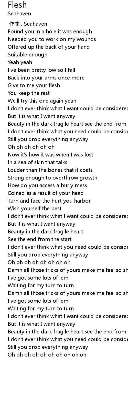 | [00:52.43] | Beauty in the dark fragile heart see the end from the start |