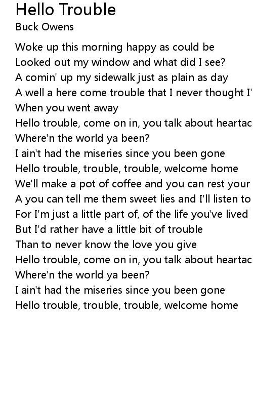 Hello trouble, come on in, you talk about heartaches |