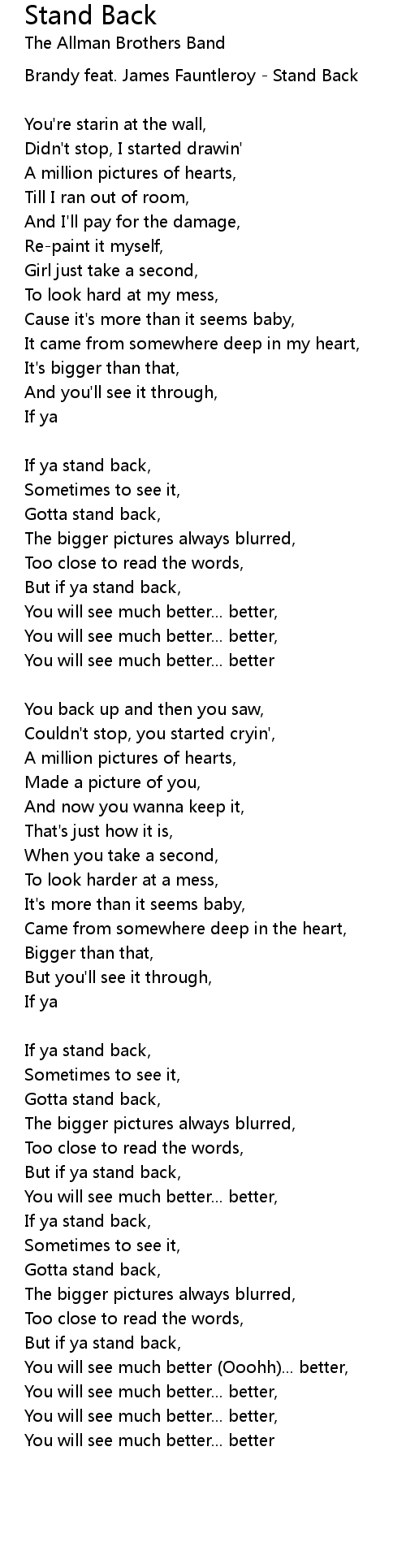 If ya stand back, |