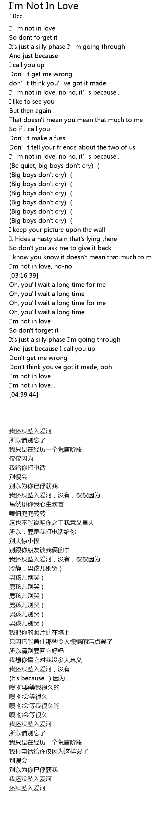 | [03:48.39] | I' m not in love |
