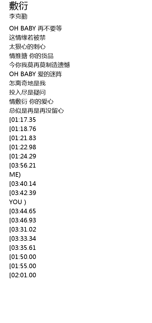 [00:23.09] OH BABY zai bu yao deng
