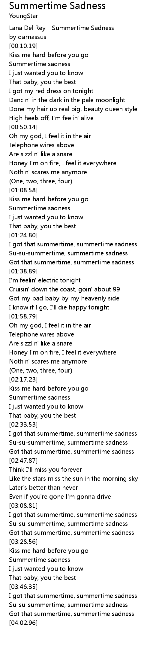 Su-su-summertime, summertime sadness |