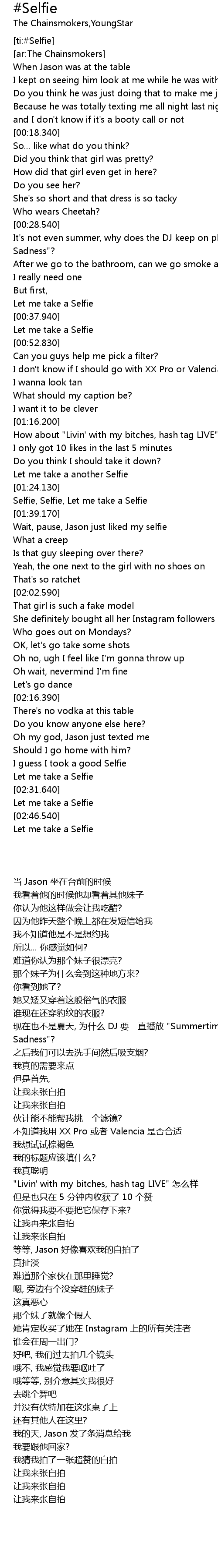 [ti:#Selfie] |
