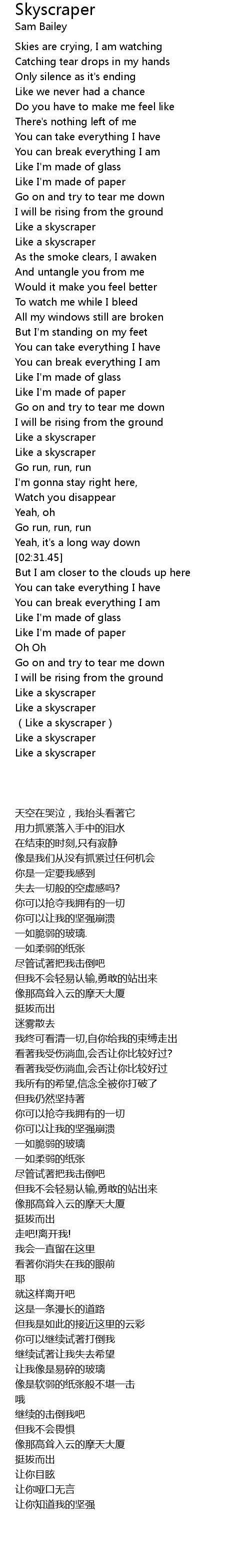 | [03:06.17] | 像那高耸入云的摩天大厦 |