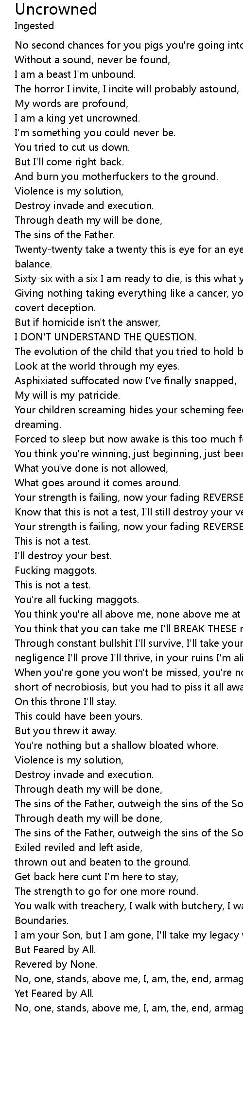 I am your Son, but I am gone, I'll take my legacy with me, Revered by None. |