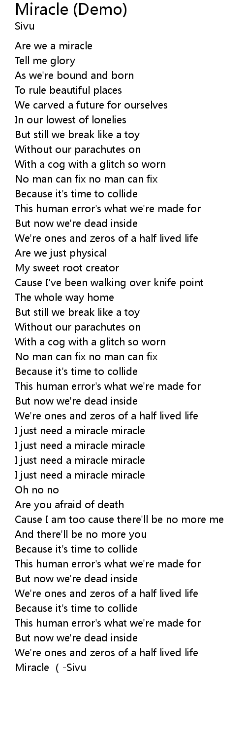 | [00:00.700] | Are we a miracle |