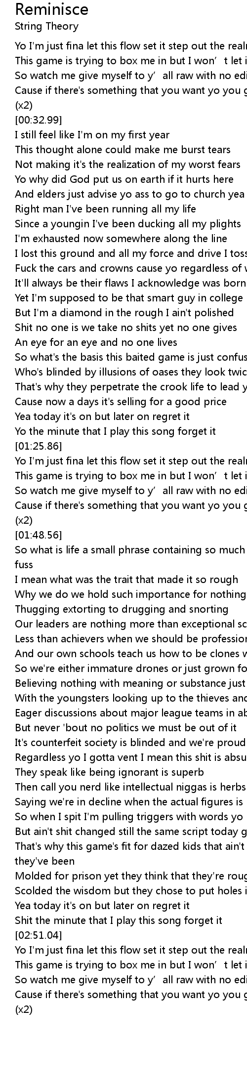 | [02:51.52] | Yo I' m just fina let this flow set it step out the realm of the poetic |
