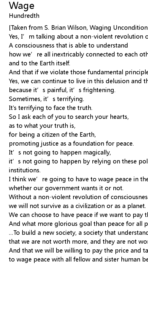 | to wage peace with all fellow and sister human beings. |