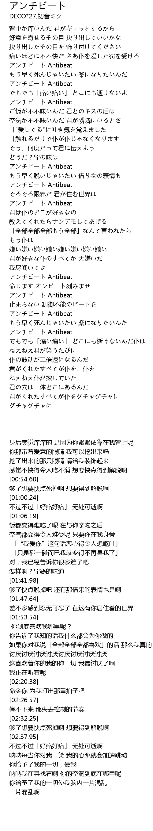 | [00:54.60] | アンチビート Antibeat |