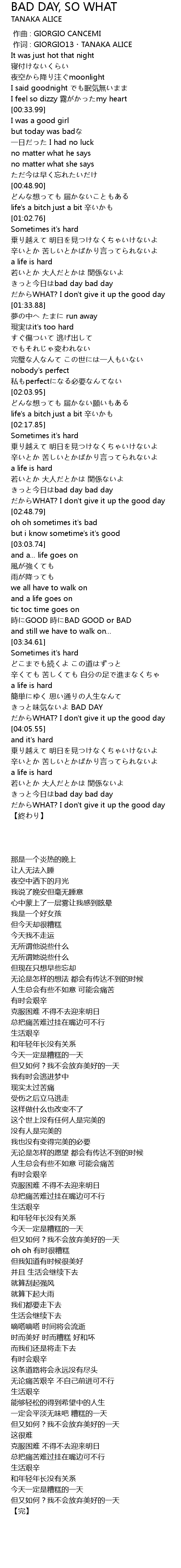 | [04:27.53] | jīn rì bad day bad day |