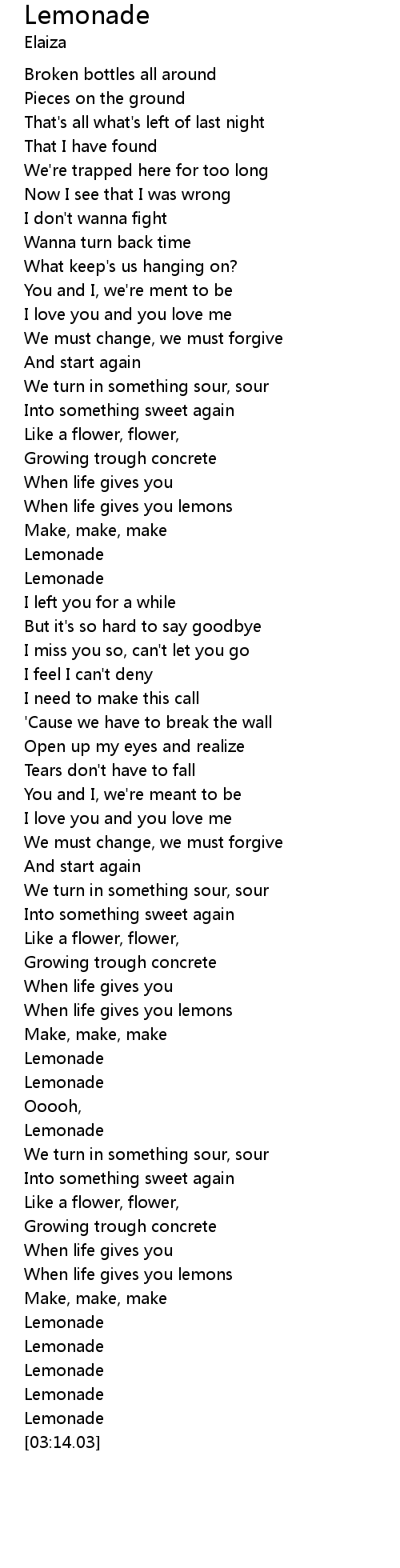 | [03:03.30] | Lemonade |