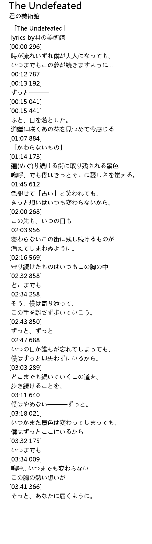 | [00:00.072] | The Undefeated |