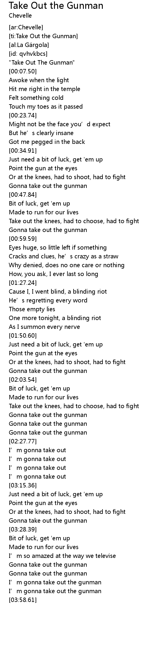 | [00:02.73] | " Take Out The Gunman" |