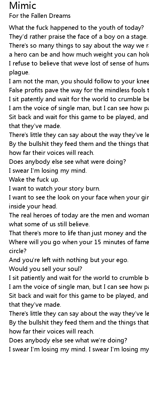 I swear I'm losing my mind. I swear I'm losing my mind. |