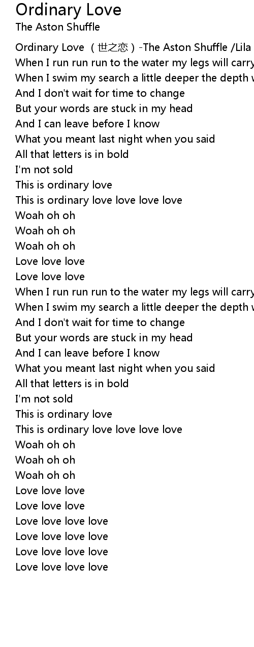 | [00:00.00] | Ordinary Love (世之恋)-The Aston Shuffle /Lila Gold |