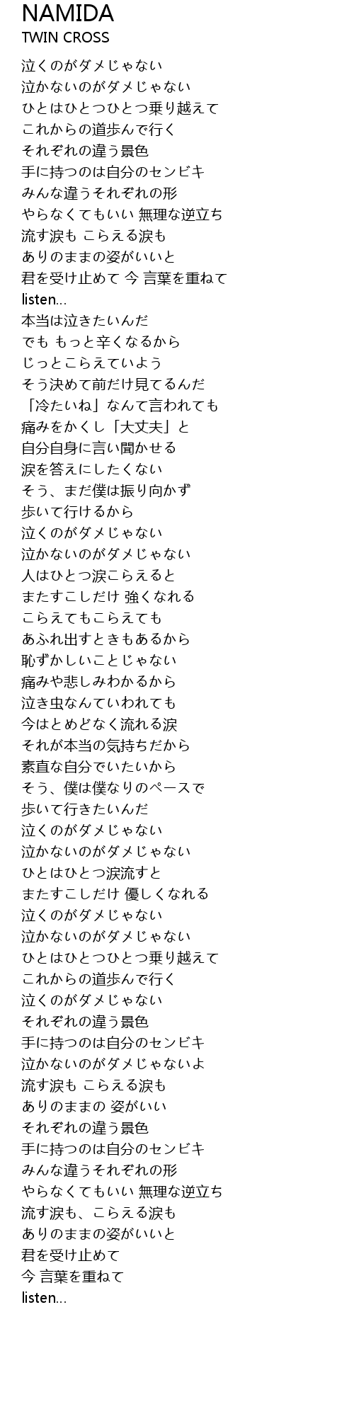 | 歌曲 | NAMIDA |